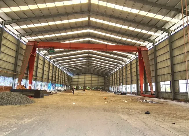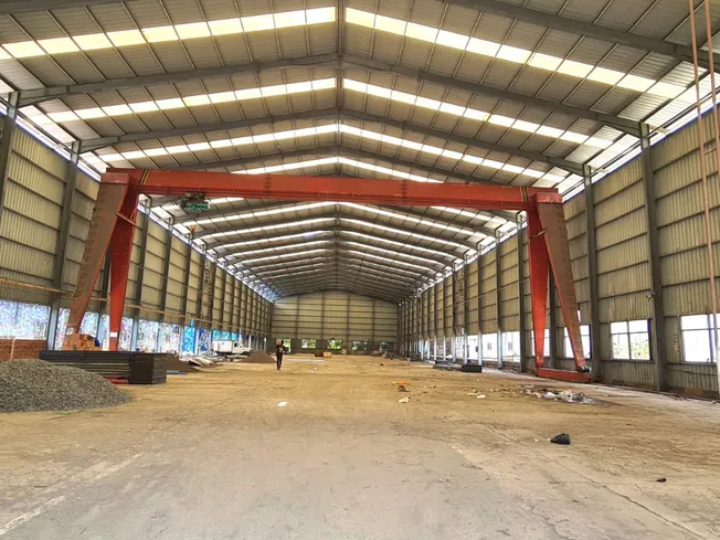 - Konstruksi Premium & Dimensi Luas: Lantai cor beton kuat K400, dinding samping setinggi 11 meter, dan atap setinggi 13 meter memberikan ruang maksimal untuk stacking tinggi dan manuver alat berat.
