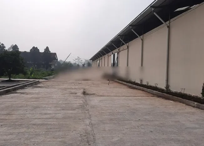• Area Parkir Luas dan Kokoh: Seluruh area parkir telah diplatakan beton penuh, mampu menampung puluhan kendaraan operasional dan truk dengan rapi.